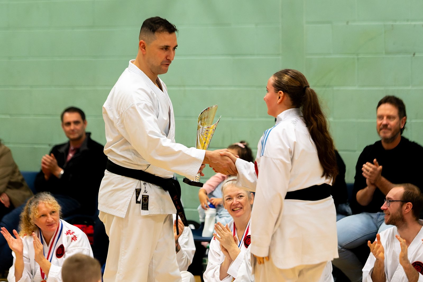 The karate on display was outstanding and it was tremendous to see so many young students and kyu grades being put forward by our Sensei’s. The future is looking very exciting indeed. Sam Sensei put everyone through their paces with a fast-paced challenging warm up. We then covered the following Katas: Empi with Mike Beckwith Sensei, Unsu with Sam Sensei and Gojushiho-Sho with Paul Sensei. Two of last years winners and RTK Kata Squad members Arthur Purdy and Joe Rutter performed Kata Gojushiho-Sho in front of everyone and we finished off with some Kumite drills, takedowns and self defence training. 2024 winner Mitchell Little did an excellent kumite demonstration to finish off a brilliant session.